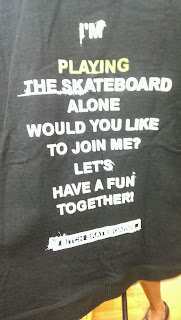 This was a short sleeve hoodie which is weird enough but then -. "?. I'm playing the skateboard alone Would you like to join me lets have fun together" Not terrible alone but the hood says "BITCH" on the top It is the brand of skate board (bitch skateboarding) but still weird plus I have yet to see anyone on a skate board in Japan.